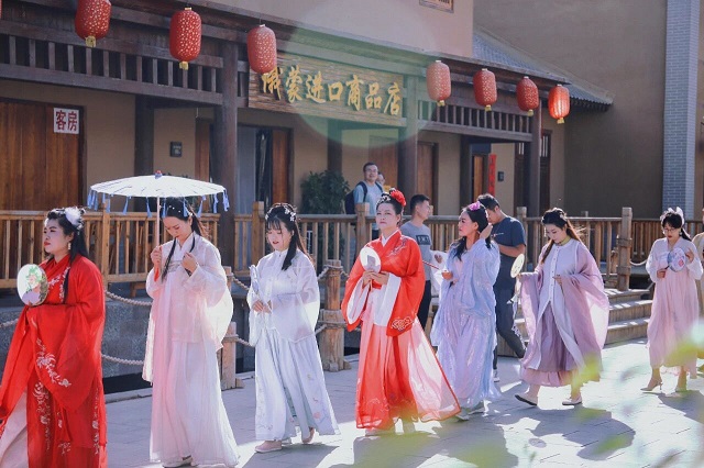 景区内沉浸式街区实景巡游队伍