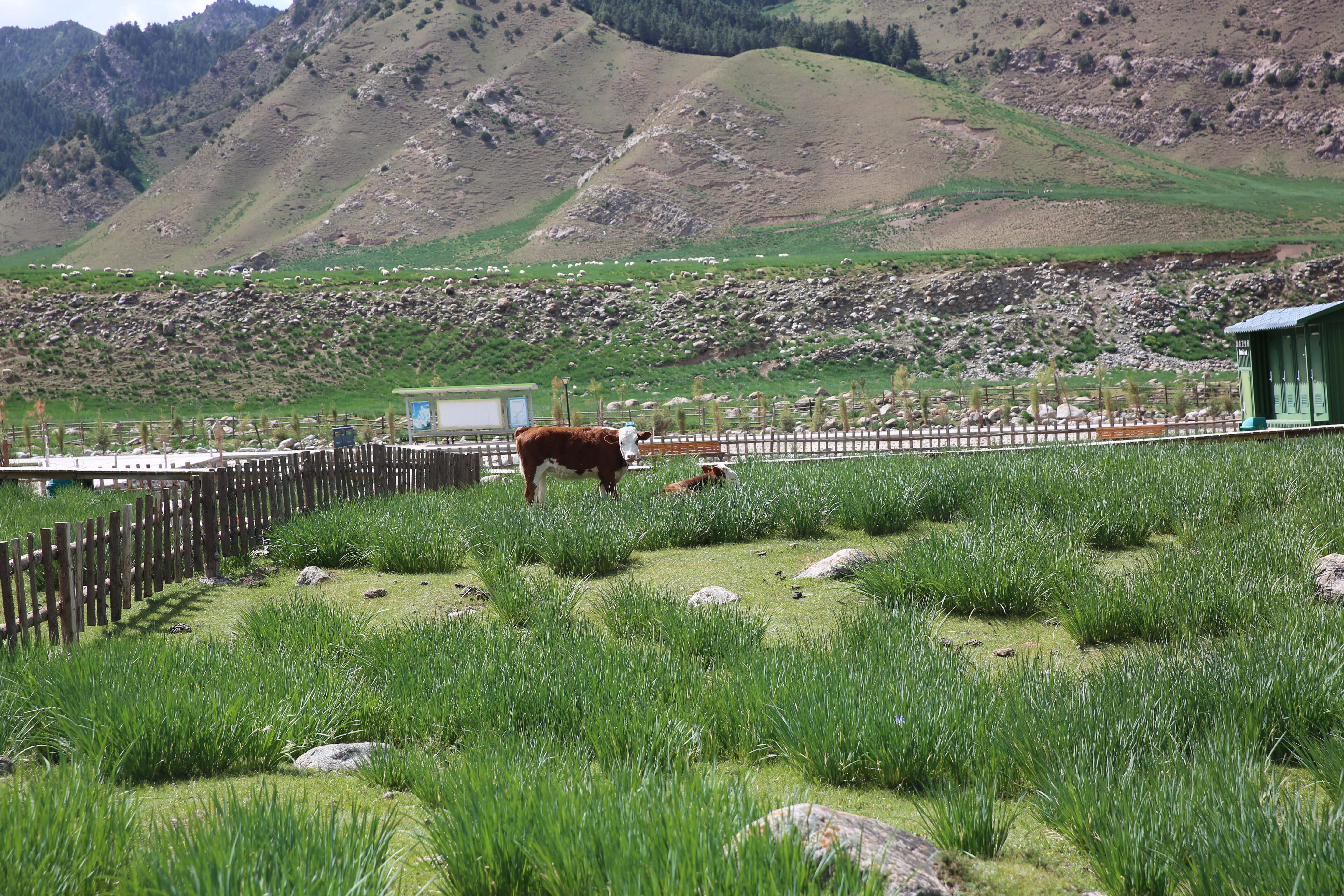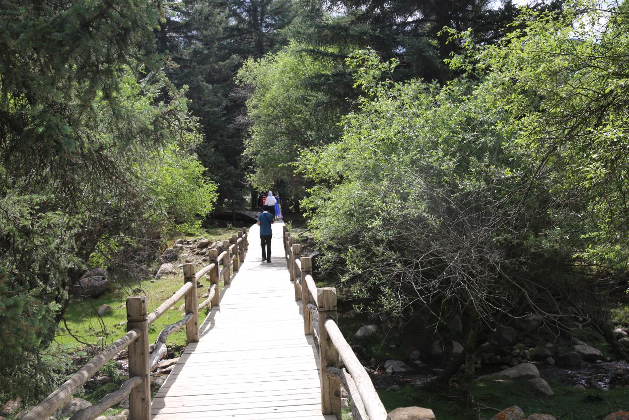在这儿,可以游览万干景色。晶莹剔透的柴尔龙海在云雾缭绕的雪山环绕中,更显清澈晶亮;尼美拉大峡谷中,高峰与深谷思尺为邻,山泉于其间叮咚流淌,在群山起伏中,马兰花大草原铺就四季花毯,盎然的绿意中涌动着无限的生机与活力。