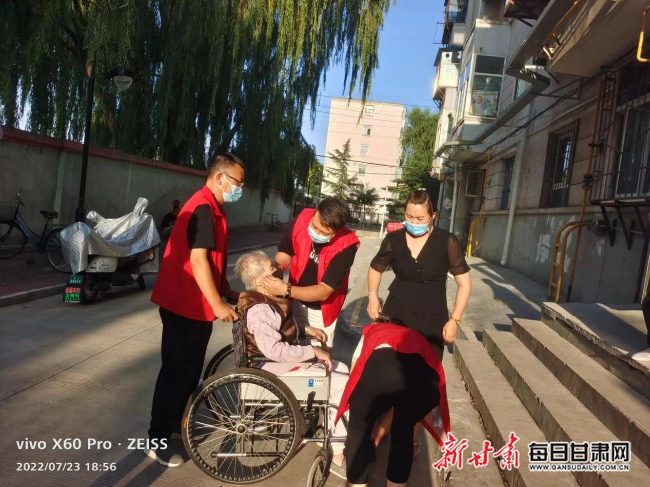每日甘肃网7月26日讯(新甘肃·每日甘肃网记者 伊力扎提·依明)本轮疫情发生后,兰州市西固区西柳沟街道上坎社区“社工委”充分发挥党组织的凝聚力,勇冲一线筑起疫情防控安全屏障,也为辖区内的老人送去关爱和帮助。