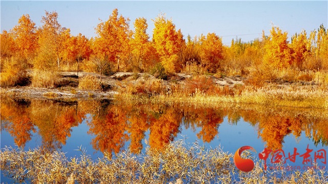 双塔水库一湖清水滋养绿洲,沿岸湿地芦苇摇曳、水鸟翔集,沿着七瓜公路前行,10月的胡杨林将带来大片金黄,让游客在甘肃看胡杨多了一种选择。
