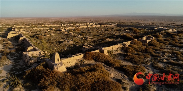 丝路古堡六工城位于瓜州县南岔镇的戈壁深处,残垣断壁在岁月的沧桑里屹立了2000多年,从空中俯瞰,至今依然能看清晰轮廓。