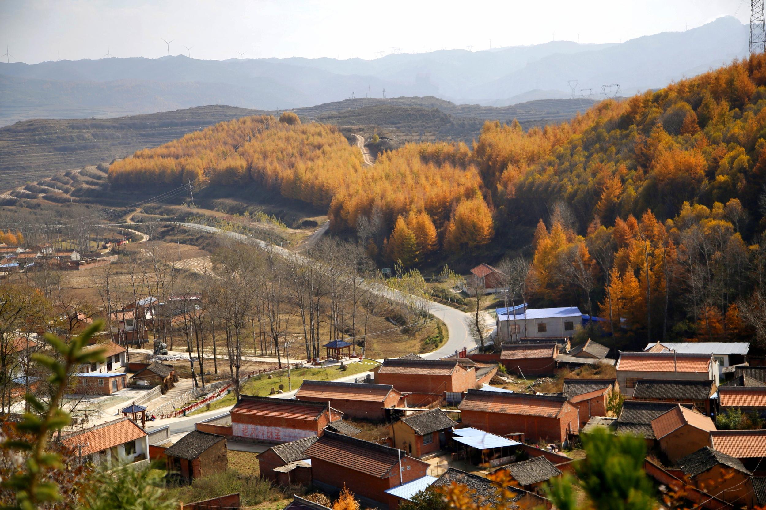 秋色将生活在这里的人们融入画中。