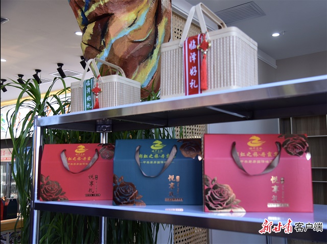 在中央厨房一楼展示中心,制作精美的“丹霞宴”特色菜品、铁锅羊肉食材,以及当地农特产品、礼品套装等,以直观呈现的方式吸引着宾客品尝,感受临泽饮食文化。