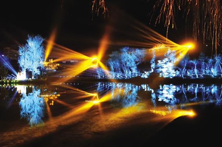 萤火流光、幻光森林、童梦之旅、萌兽世界、森林极光、快乐梦工厂、羊了个羊互动投喂乐园——甘泉公园“森林之光·梦幻之旅”光影艺术节将在春节期间开展,9个区域的灯光秀展示利用甘泉公园得天独厚的环境优势,借助树林环境,用裸眼3D全息投影,动态激光灯、实物置景、3D立体环绕音响、真人互动、树妖交谈、气球小丑演艺等,全新一代的沉浸式科技体验、空间视错觉、光影特效的完美融合,全新“夜游”模式的探索,让游人在璀璨光影中感受到浓郁的人文气息,夜景华丽壮观,意境深远,置身其中仿佛遨游在一个梦幻光影世界,以绚丽光影传播张掖这座“彩虹之城”的独特魅力,抒写对家乡的美好祝愿。