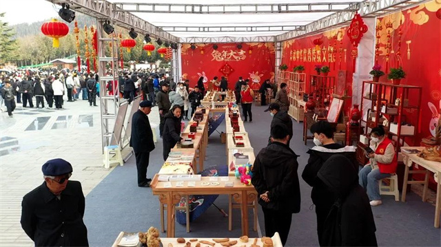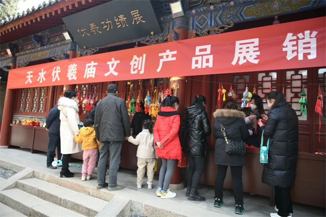 正月十三至正月十七,伏羲庙中院东西朝房、太极殿东西两侧,伏羲庙文创产品琳琅满目、充满年味。无论是本地人还是游客,一件饱含当地文化的文创产品无疑是作为新年礼物的不二选择。