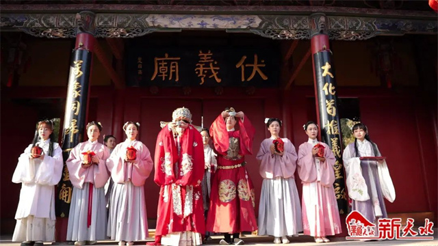 年关里,一场隆重的明制汉婚秀在伏羲庙举行,新人祭拜人文始祖伏羲,感恩伏羲功绩、祈愿幸福美满。