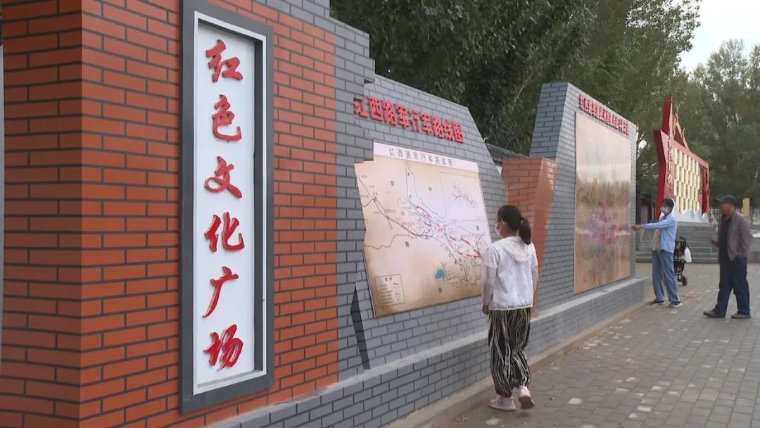 在新建的红色文化广场,红色五角星,红西路军行军路线,红西路军重要战役标识图……处处洋溢着“红色”的气息。