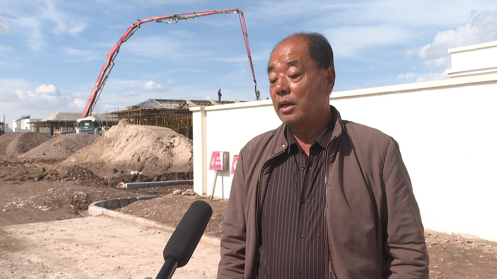 施工负责人 赵世杰:为了加快工程进度,现场现有工人126人,机械设备电子配料站3台,运输车辆8辆。目前房屋主体结构全部完工,现在正在进行村委会修建和基础配套设施建设,预计月底完工。