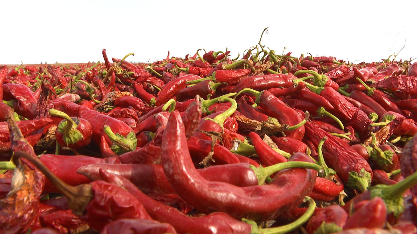 甘肃德源农业科技有限公司总经理 蔡子龙:今年我们自建红辣椒种植基地8000亩,落实订单农业25000亩,现在鲜辣椒已经收购结束,干辣椒正在晾晒中,大概20天以后上市,重点销往四川,山东等地。
