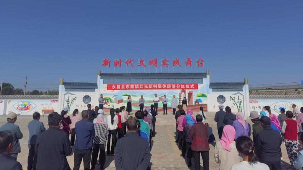 (永昌县融媒体中心记者:谢景鹏 报道)2023年9月16日上午,易地扶贫搬迁村——红光新村举行首次村集体股份经济合作社分红仪式,94户325人共领取了7.2万元分红。在场的村民群众纷纷表示,易地扶贫搬迁项目让他们真真得到了实惠,村民对今后的美好生活更加有了盼头。