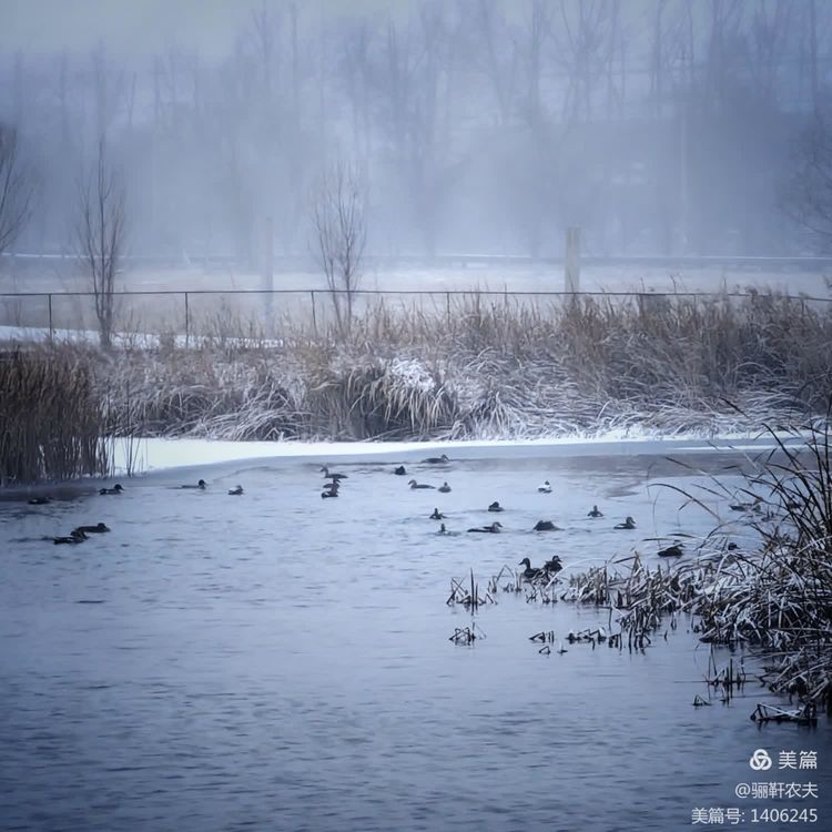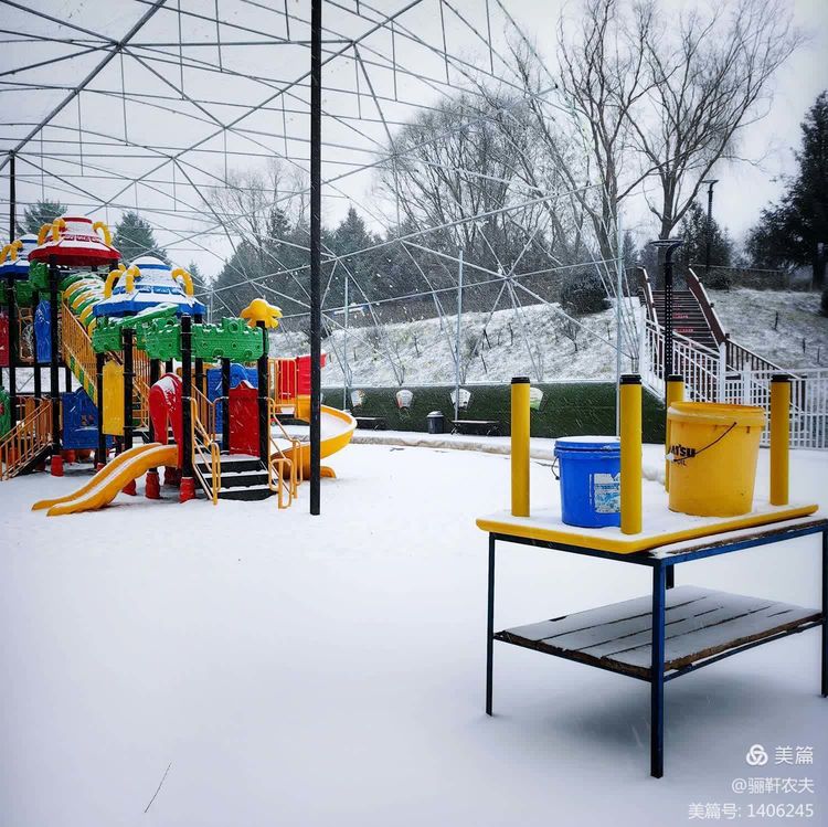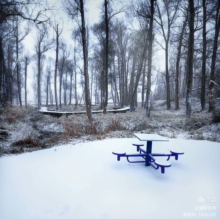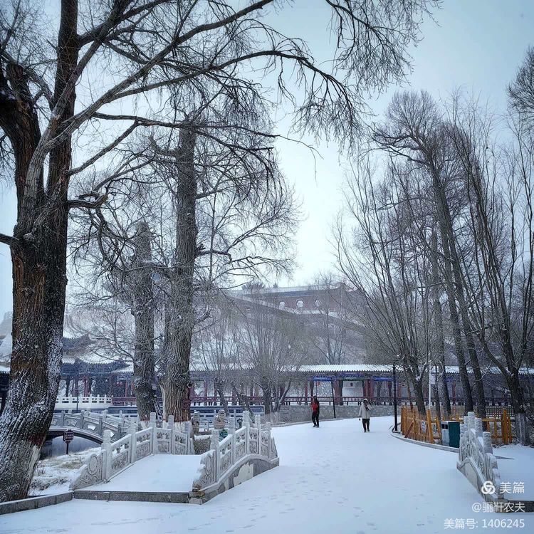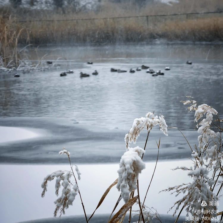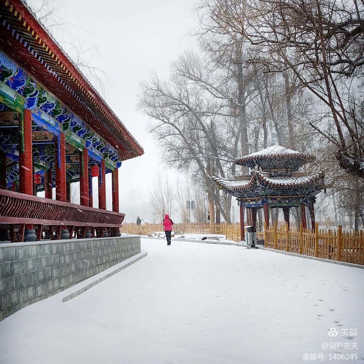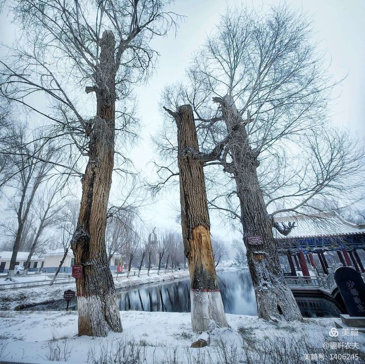 雪花纷纷扬扬给湿地的草坪铺上了一层厚厚的雪被,泉水在冰冷的小溪里缓缓流淌,呈现出深邃而神秘的色彩,冰冷的泉水与雪白的草坪交相辉映构成了一幅幅绝美的画卷!近处的亭台、古树在雪的映衬下更加美丽,在湖水中倒映出点点轮廓相辅相成,相映成趣构成一幅和谐的冬日图景!