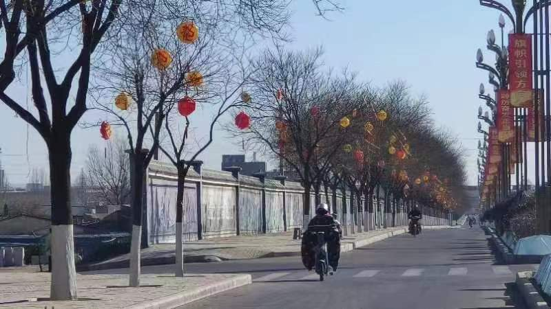 在县城东街和北街施工现场,工人们正忙着安装福龙灯笼、百福灯笼、飞碟灯笼、八角国潮灯、流星雨灯串等各式各样的灯笼灯饰,新颖的造型、鲜艳的色彩,为冬日的街道增添了一丝活力。