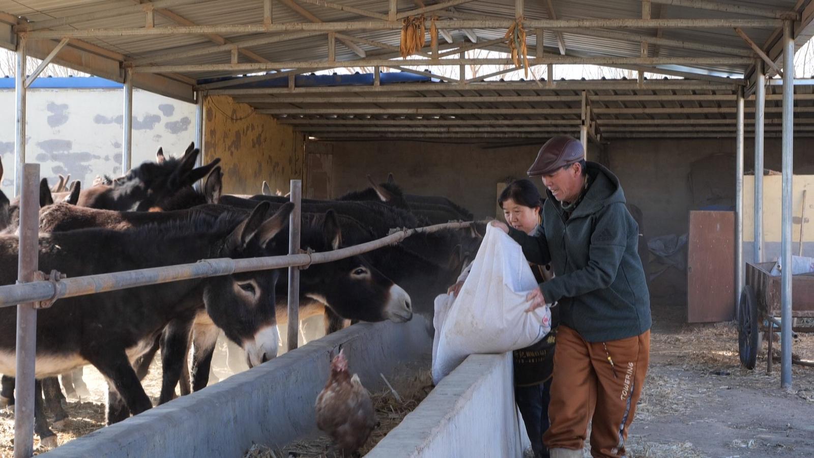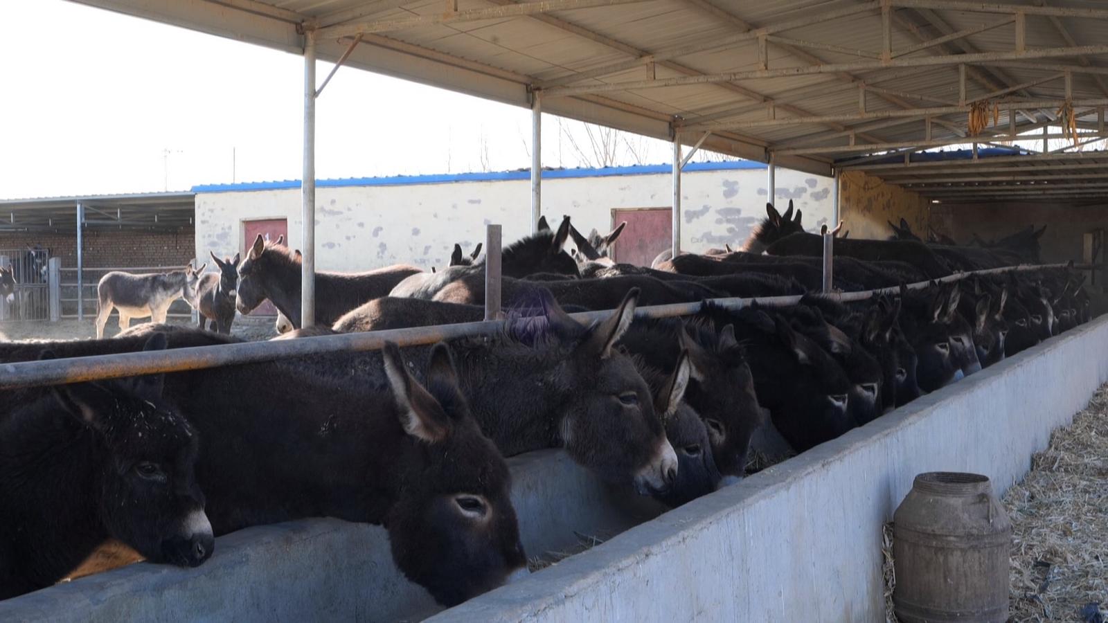 “驴相对好养,耐粗饲,疾病少,总的就是物以稀为贵,市场上这个东西少,它的价值就高,再说驴肉的品质也一直好,销量一直也可以,下游产品相对开发的也多,像驴奶面膜、驴奶等。”所以养驴成为了赵发荣发展特色养殖的首选。