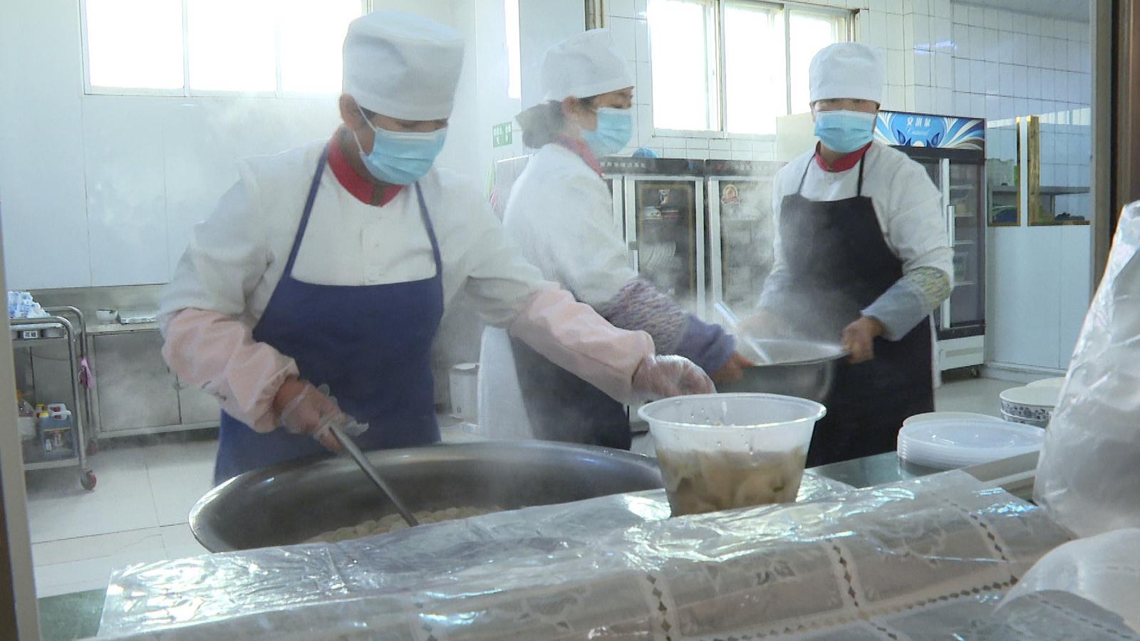 食堂里,工作人员紧张又忙碌,饺子一盆接着一盆出锅。老人们有序落座,都迫不及待地期待着。一碗碗热气腾腾的饺子,老人们吃得津津有味。