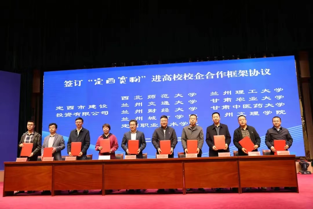 活动现场,定西建设投资有限公司与定西职业技术学院、西北师范大学、甘肃农业大学、甘肃中医药大学、兰州交通大学、兰州财经大学、兰州理工大学、兰州城市学院、兰州文理学院等省内高校代表签订了校企合作协议。