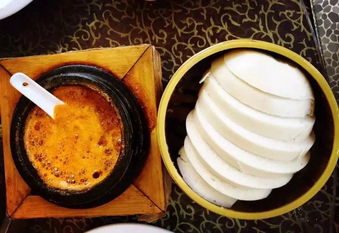 永昌面辣子讲究下锅即食,面辣子不用出锅,掰一块刚出锅的馍馍,就在锅里蘸几下,面辣子还滋滋冒着热气,再用另一块热馍对夹,辣香油香面香一起入口,美味无比。
