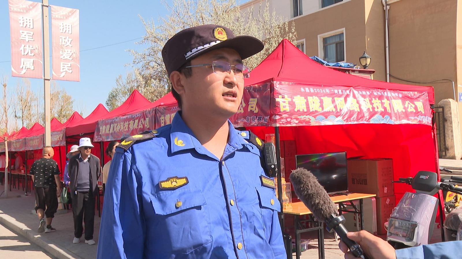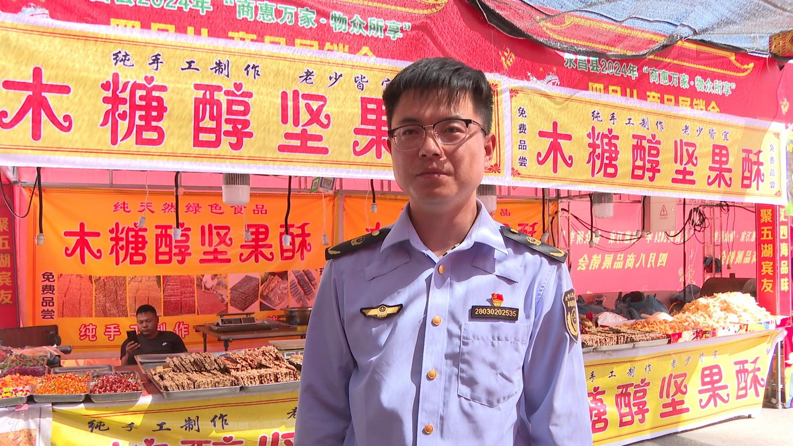 永昌县执法局工作人员 王少华:县执法局积极配合商务局进行“四月八”商品展销会的布展工作,我们从5月13日开始至5月30日,期间每天安排8名工作人员执勤,维护市场内的秩序及流动摊位占道经营等乱象的整治,为节会营造安全文明有序的氛围。