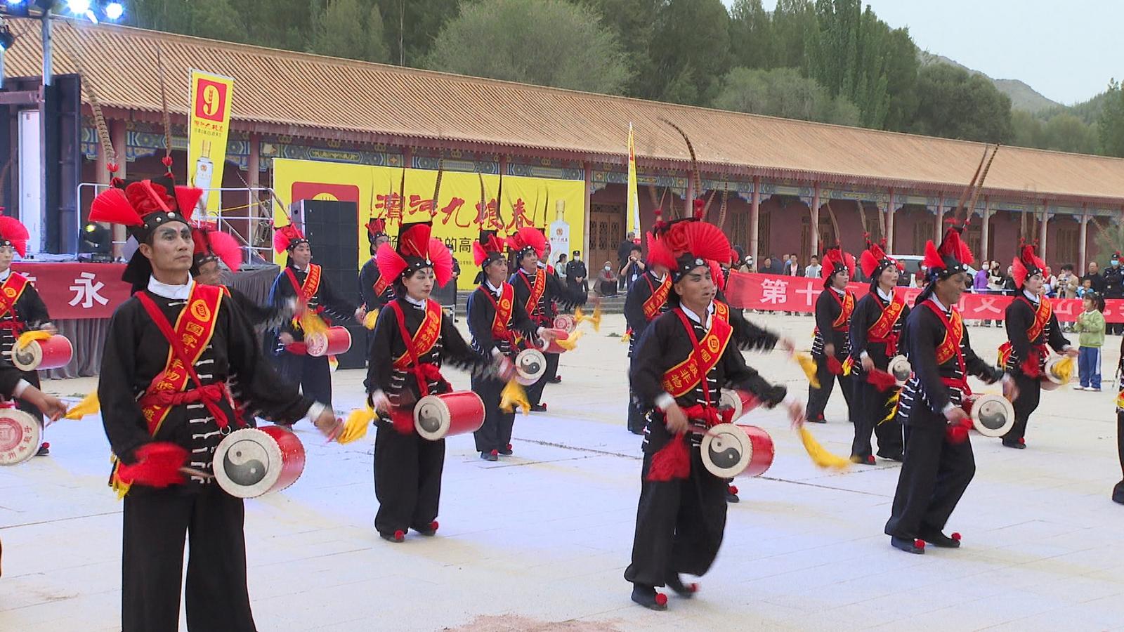 篝火熊熊燃起,晚会在铿锵有力的《凉州攻鼓子》表演中正式拉开帷幕,充满节奏感的鼓点伴随着队形的变换让人激情澎湃。接下来阿拉善右旗萨吾尔登舞蹈队、肃南裕固族自治县文化馆、永昌县沙枣林舞蹈队、永昌县骊靬新疆舞队轮番登场,充满民族特色的舞蹈表演让观众连连叫好。