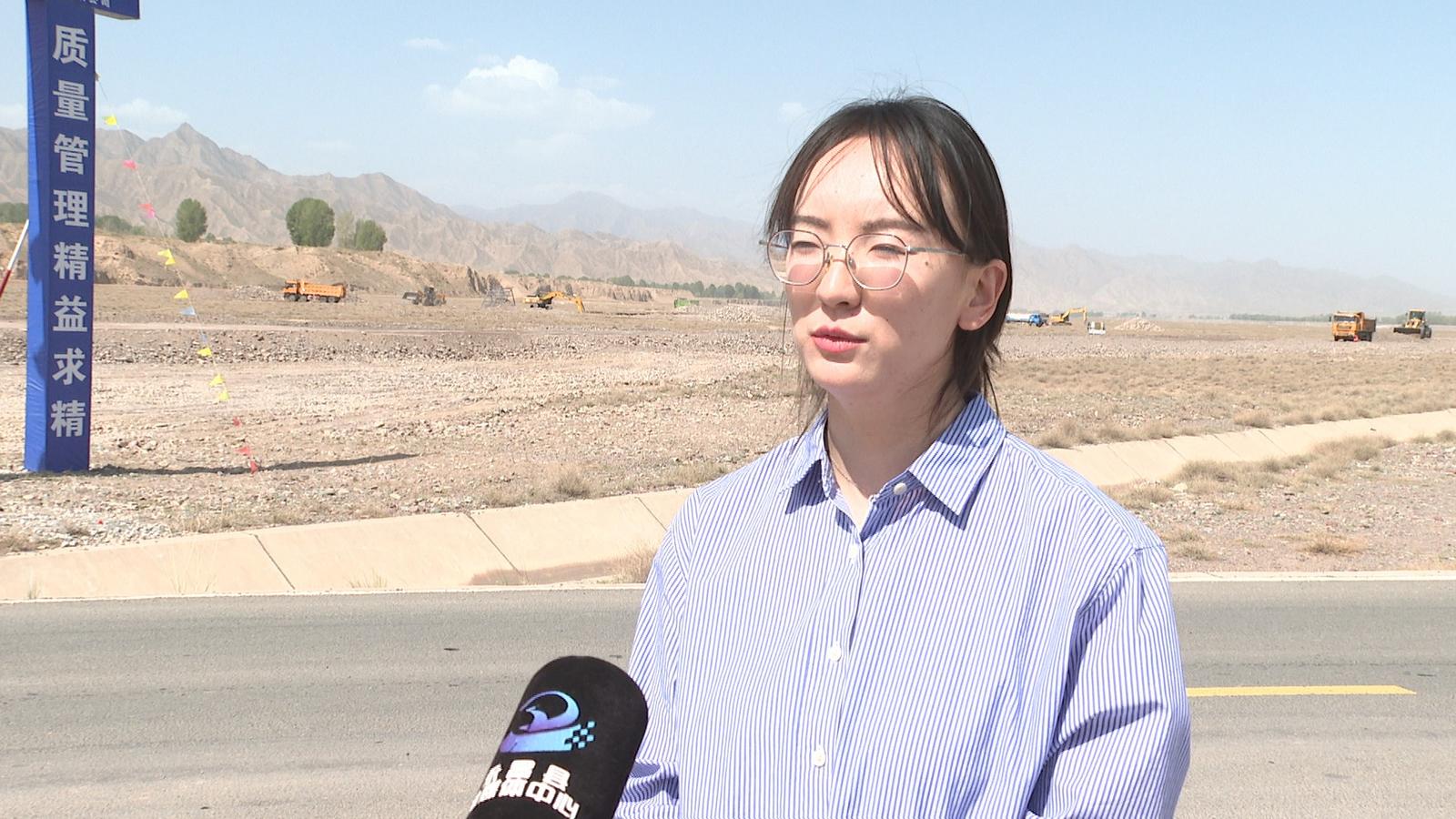 永昌县东河水管处干部 闫蓉:金昌市永昌县东大河南坝路至入河口段河道治理工程主要建设内容:治理河道总长44.33公里,新建格宾石笼防洪堤49.96公里,工程总投资15341.56万元,3月25日开工,计划今年年底12月31日完工。目前临建设施已完成,正在进行堤坝碾压,已完成整体建设任务的35%。