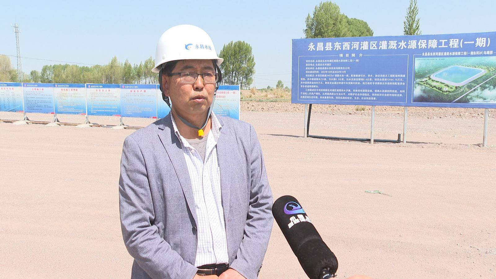 永昌县昌源水务投资有限责任公司技术负责人 贾俊:永昌县东西河灌区灌溉水源保障工程,包括三个蓄水池,总库容960万方,总投资5.86亿,目前,正在进行一期东河二号调蓄蓄水池的修建,主要进行蓄水池的开挖、池堤夯建,现今完成总工程量的30%。