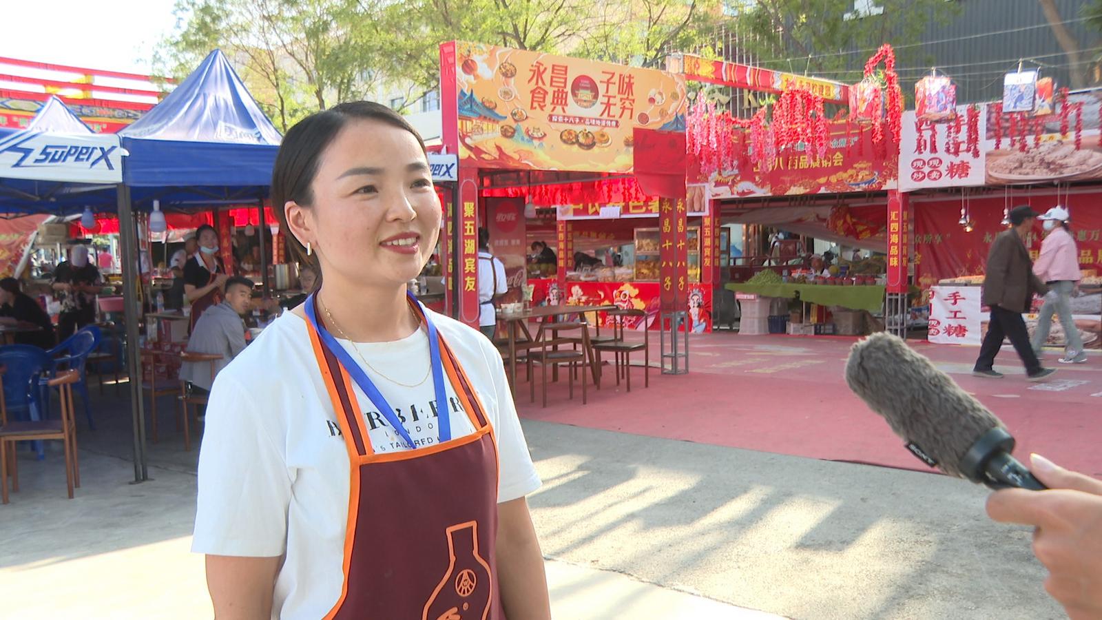 永昌县老厨子餐饮有限公司负责人 陈霞:我们是永昌县老厨子餐饮店,今年我们借助四月八展销会,为大家带来了永昌“十八子”,目前营业额大概4万元。
