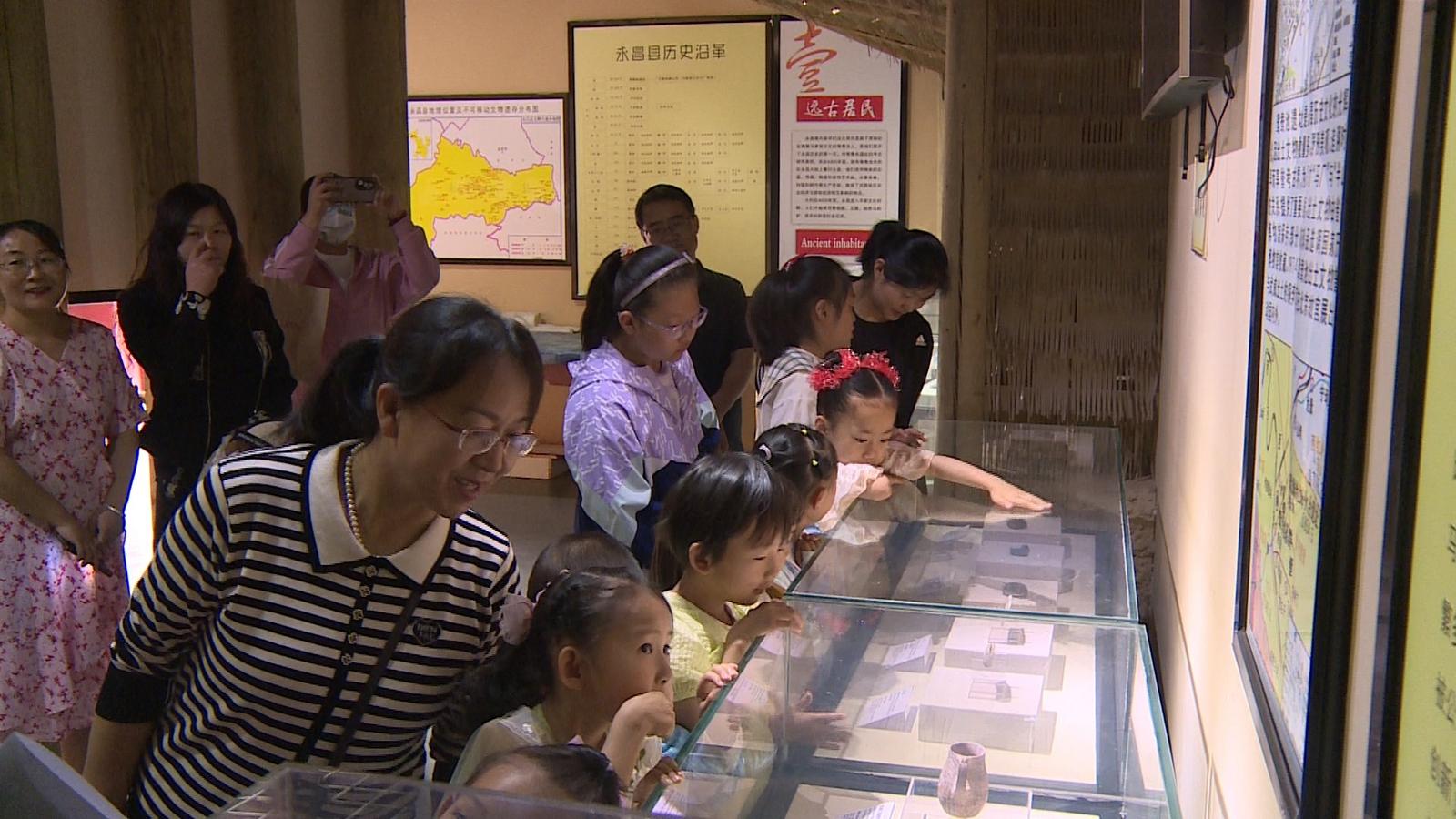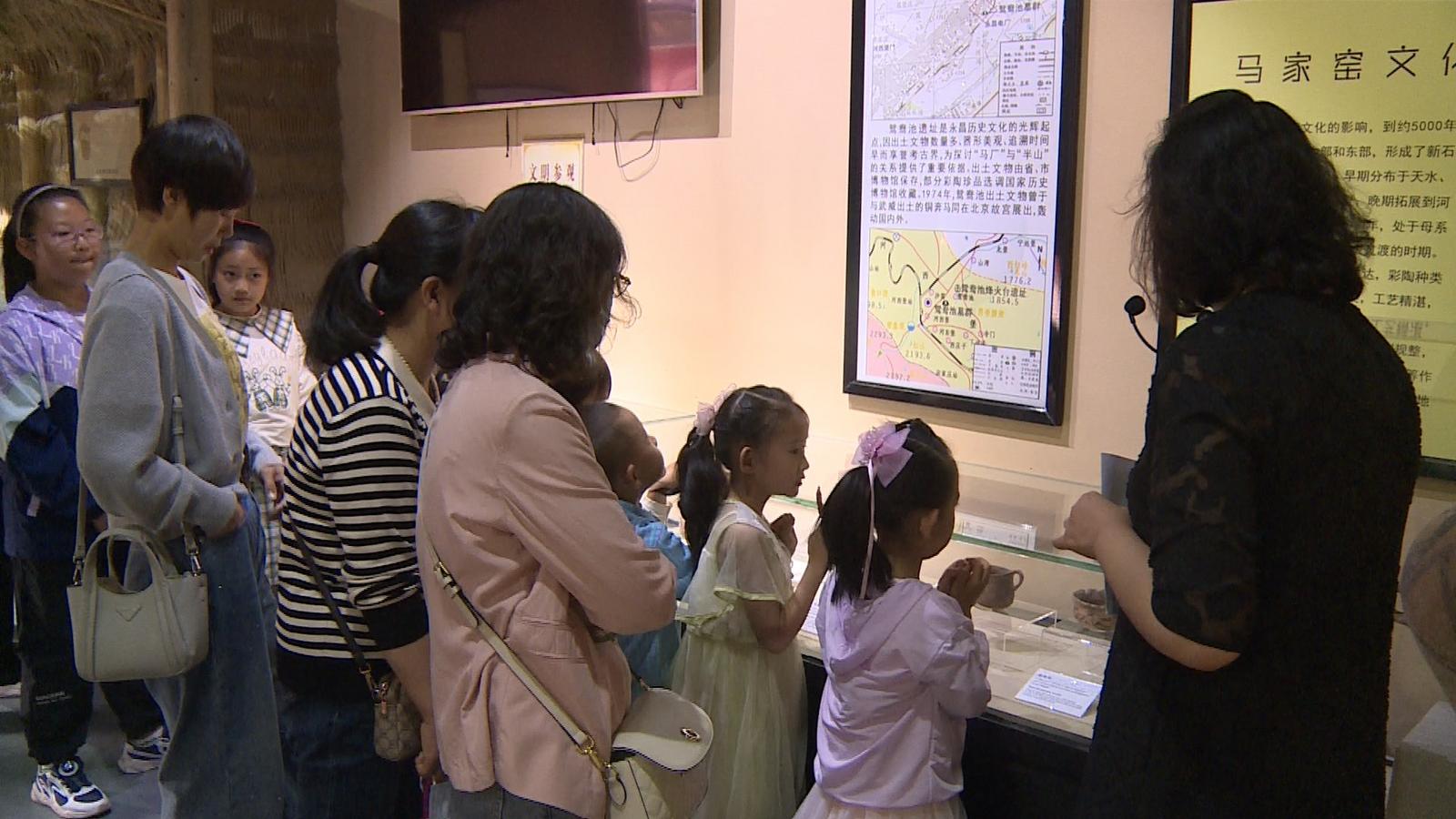 活动伊始,博物馆工作人员首先带领亲子家庭参观了博物馆的历史和文物展厅,详细讲解了永昌县的历史变迁和文化发展。当讲解到馆内珍藏的青铜器文物时,孩子们都表现出了极大的兴趣。他们围在文物前,仔细观察着这些古代匠人的杰作,不时发出惊叹之声。
