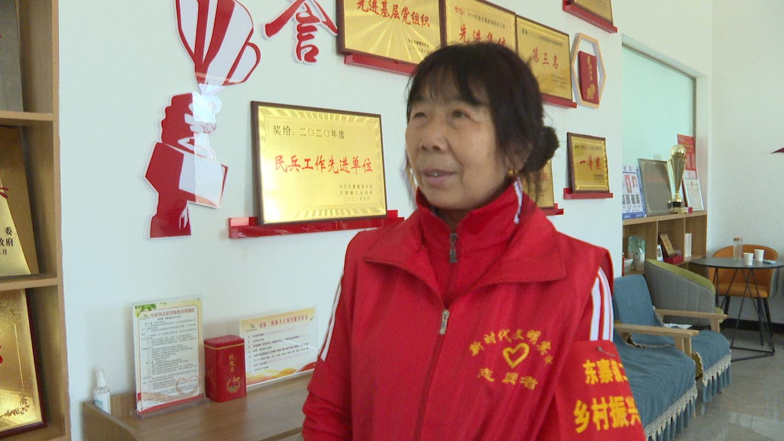“红袖套”志愿服务队员 狄秀芬:我们除了在村上搞活动的时候维持秩序,发彩页做好宣传。平时在各路段上打扫卫生,清理村庄垃圾,还有去帮助老人打扫卫生。所以好多人评价我们村的卫生特别清洁。