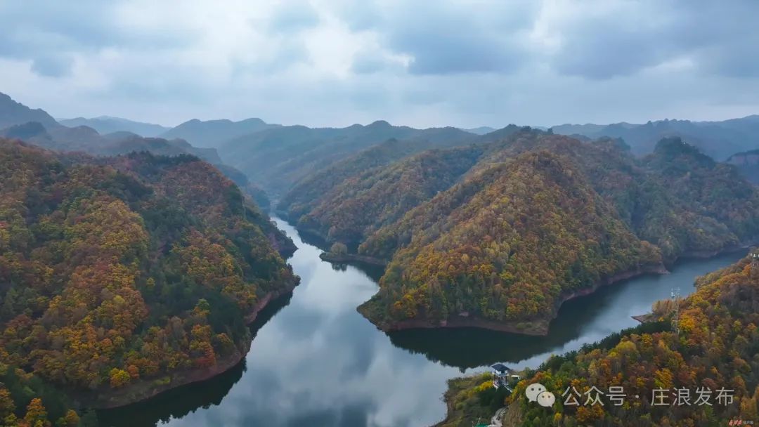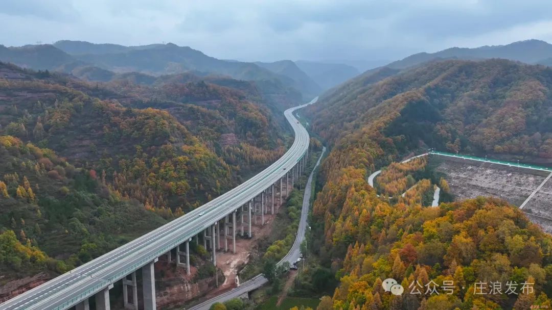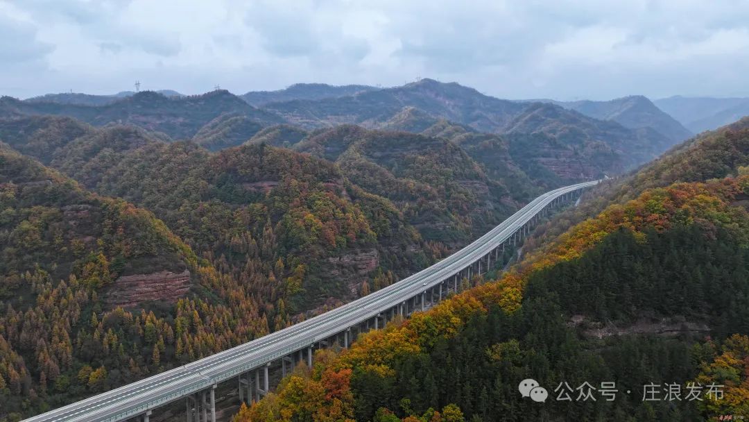 深秋时节,关山色彩斑斓,在庄浪县云崖寺景区,平绵高速穿梭彩林之间,高速公路两旁,层林尽染。满眼望去,山巅沟壑、近峰远崖之上,红黄绿三色渲染下的秋日森林绚丽多彩、魅力无穷。一幅如梦似幻、韵味悠长的关山秋景令人心旷神怡。