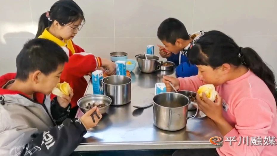 平川区宝积镇贺家川小学校长杨文萍:“每天早上为学生提供丰富的营养早餐,有馒头、花卷、稀饭还有牛奶、苹果汁、煮鸡蛋,菜品荤素搭配,让学生能够吃饱吃好,上课的时候有精神。”
