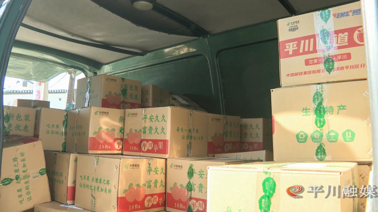 平川区宝积镇窎沟村果农冯兴淑:“网络往出发苹果相对来说要比当地多卖1块多钱,再一个到村上的这个快递也快,我们也方便。今年,我已经发了30多箱子苹果了。”