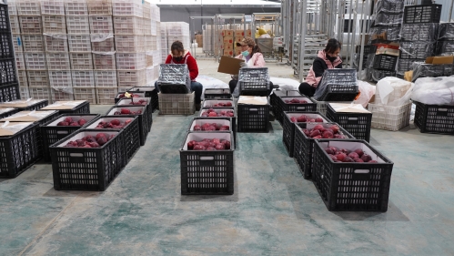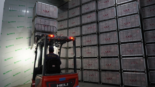 走进静宁县李店镇常津公司气调库,一筐筐摆放整齐的苹果散发着诱人的香气。工人们驾驶着叉车穿梭在储藏库和加工车间,将一筐筐新鲜苹果有序的入库存储。每一个步骤都严格按照标准化流程进行,确保苹果在存储过程中不受任何损害。