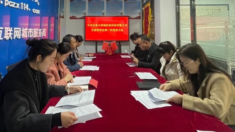 11月14日,中共甘肃云同城信息科技有限公司支部委员会成立揭牌仪式暨第一次党员大会举行。这是平川区成立的第一家互联网企业党支部,标志着我区互联网行业党建工作翻开新篇章,对推动党管互联网向纵深发展,提高互联网企业的竞争力和创造力具有重要意义。
