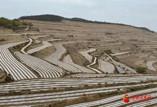 初冬时节,在静宁县界石铺镇大河村南山千亩旱作农业示范带,层层梯田地膜覆垄,银光粼粼,行列整齐,孕育着来年农业丰产、农民增收的希望。