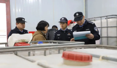 检查中,民警认真查阅了易制毒化学品购买申请备案、入库出库台账、保管使用明细,实地查看了企业易制毒化学品库房、供料管路等储存设施,对盐酸、硫酸、丙酮、甲苯等易制毒化学品的采购、使用、销售等各环节的纸质档案、电子台账进行了详细核查,对发现的安全隐患,要求立即整改。同时,要求易制毒化学品使用单位强化责任意识和安全意识,加强易制毒化学品储存、运输、使用等环节的规范操作和管理,落实双人双锁仓储、两人签名领用等安全管理措施,确保安全生产,严防发生事故和易制毒化学品非法流失。