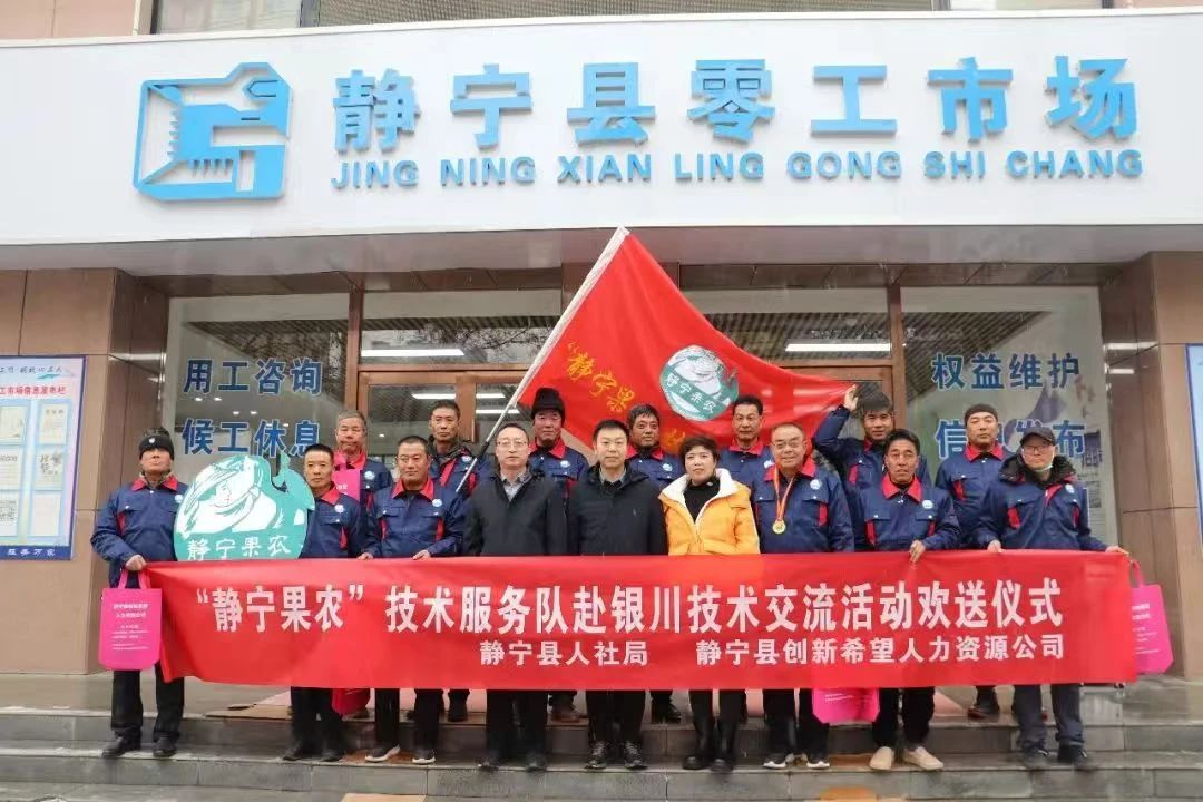 日前,“静宁果农”技术服务队赴宁夏银川技术交流欢送仪式在该县零工市场举行,这是促进“静宁果农”劳务品牌的又一举措。