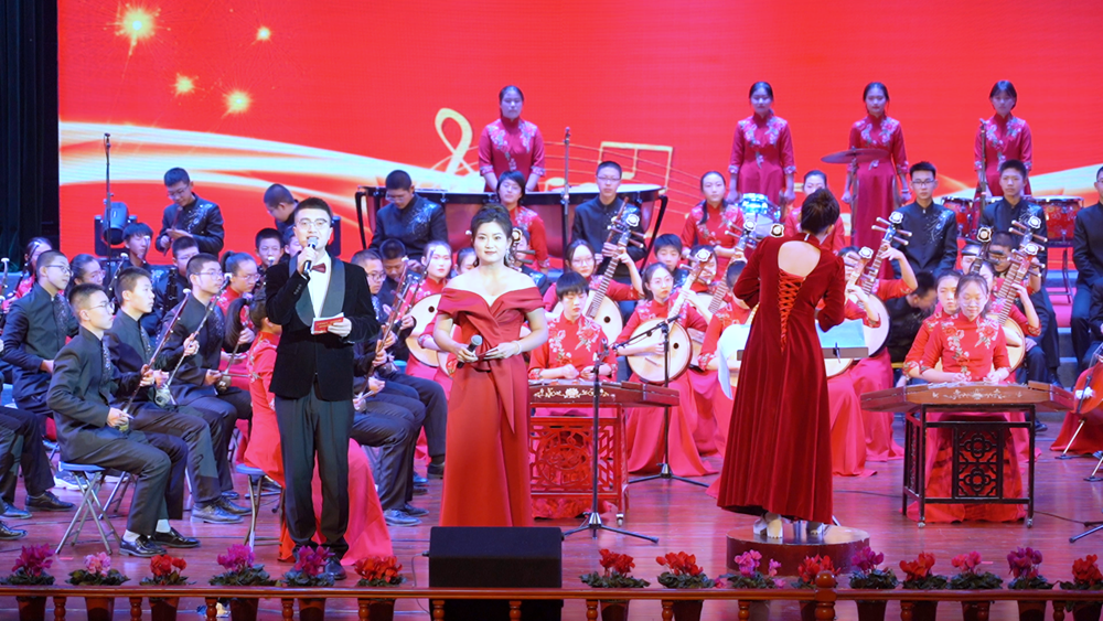 精彩节目依次上演,有表达对伟大祖国和党无限热爱与崇敬的大合唱《伟大的祖国伟大的党》,有生动描绘英雄人民勇敢无畏、团结一心抗击台风的古筝合奏《战台风》,有展现静宁苹果产业高质量发展的女声小合唱《静宁的苹果红又甜》,有充满革命年代热血情怀的经典歌剧《洪湖赤卫队》选段《洪湖水浪打浪》等多首脍炙人口的音乐作品,把音乐会一次一次推向高潮。