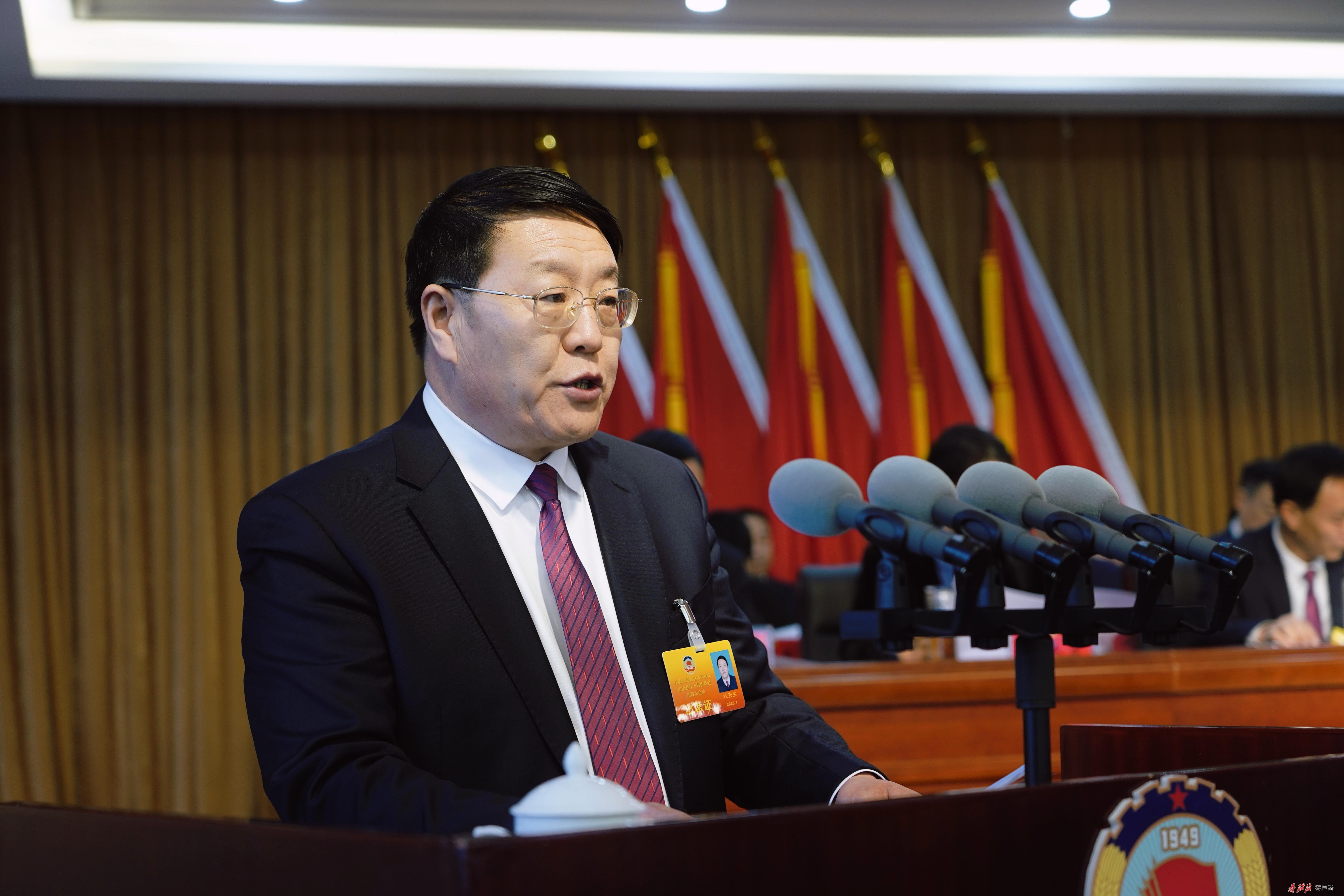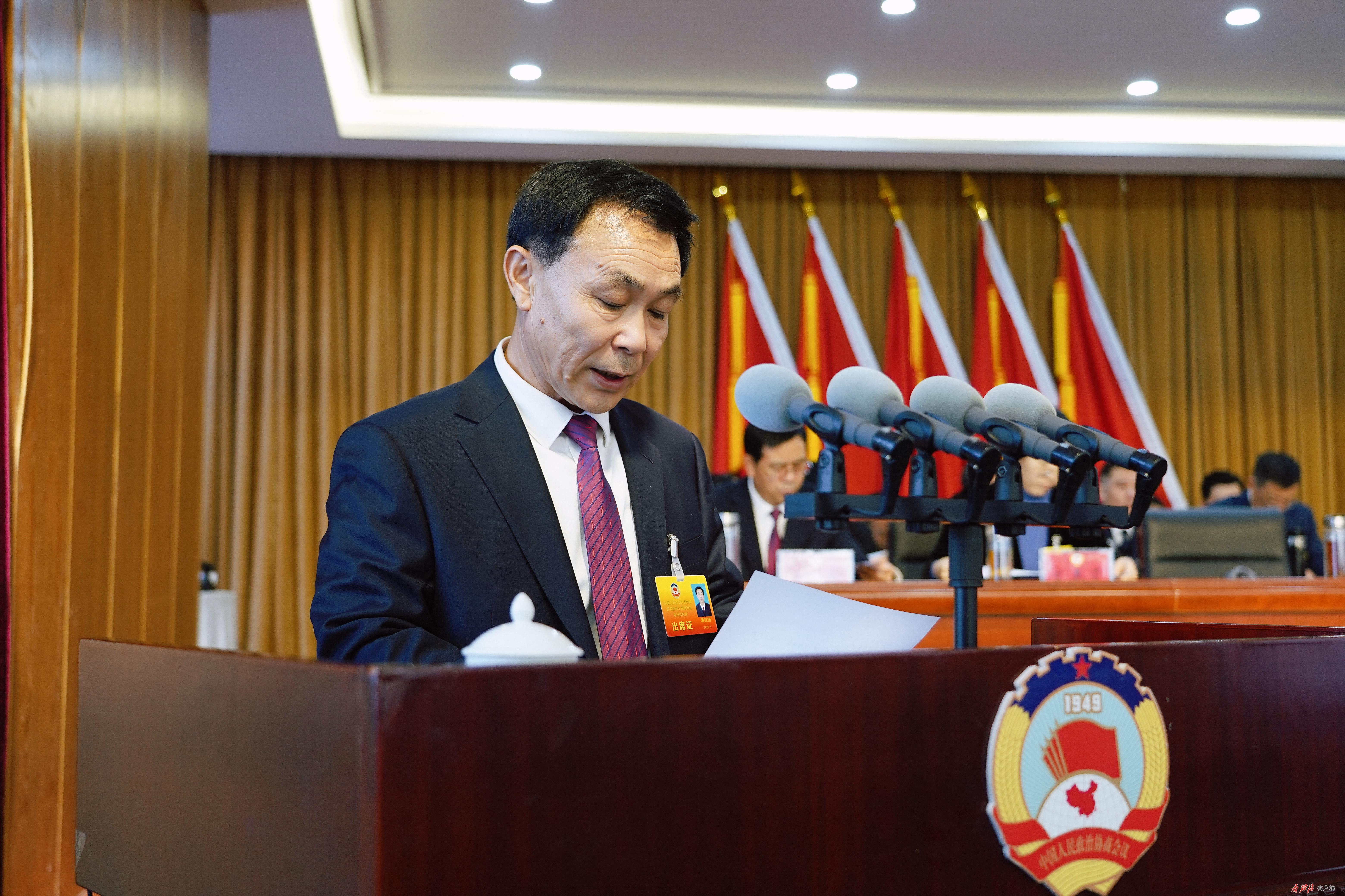 受政协庄浪县第十届委员会常务委员会委托,杜宏生向大会报告工作。报告指出,2024年是全面贯彻落实党的二十大精神的关键之年,是新中国和人民政协成立75周年。一年来,在中共庄浪县委的坚强领导下,在县人大、县政府的大力支持下,县政协及其常委会坚持以习近平新时代中国特色社会主义思想为指导,紧紧围绕县委的各项决策部署、发展思路和目标任务,倾力服务全县中心大局,充分发挥专门协商机构作用,广泛凝聚社会各界共识,推动人民政协事业创新发展,坚持思想政治引领、不断夯实团结奋斗根基,坚持服务中心大局、助推经济社会高质量发展,坚持发挥政协优势、紧扣民生热点建言献策,坚持大团结大联合、广泛汇聚各界共识合力,坚持加强自身建设、推动履职工作提质增效,为全面建设社会主义现代化幸福美好新庄浪作出了积极贡献。