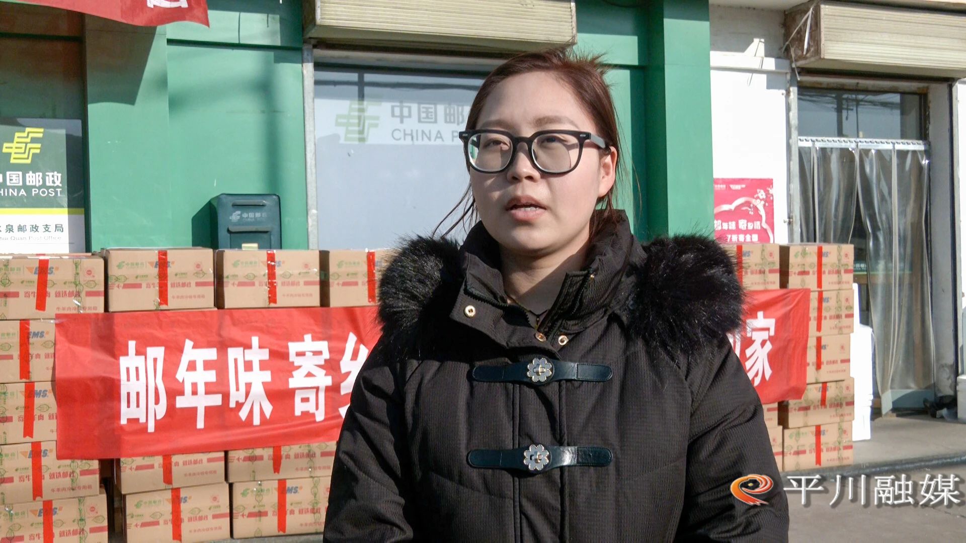 平川邮政寄递专管朱俊霖:“在春节来临之际,为大家提供便捷的邮寄服务,帮助他们将家乡的特产、年货等寄给远方的亲人朋友,传递家乡的味道。同时,还根据不同的特产提供个性化包装,确保物品安全送达。”