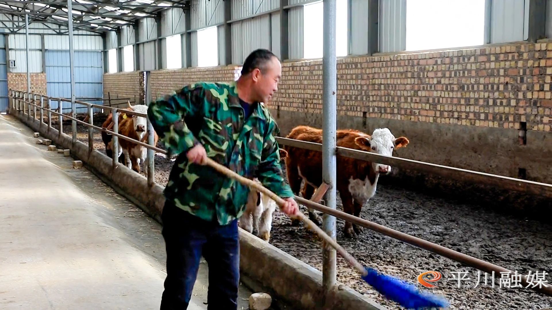 趁着牛群“午休”,工人们开始分工打扫牛舍。一方面要保证健康的饲养环境,一方面则为今年即将上线的循环农业做打算。