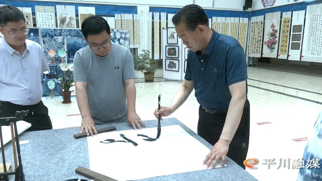 平川中学学生赵怡轩:“展厅里的书法作品让我眼前一亮,行云流水的笔画中蕴藏着传统文化的无限韵味,文字和线条的力量让我感觉有力量。”