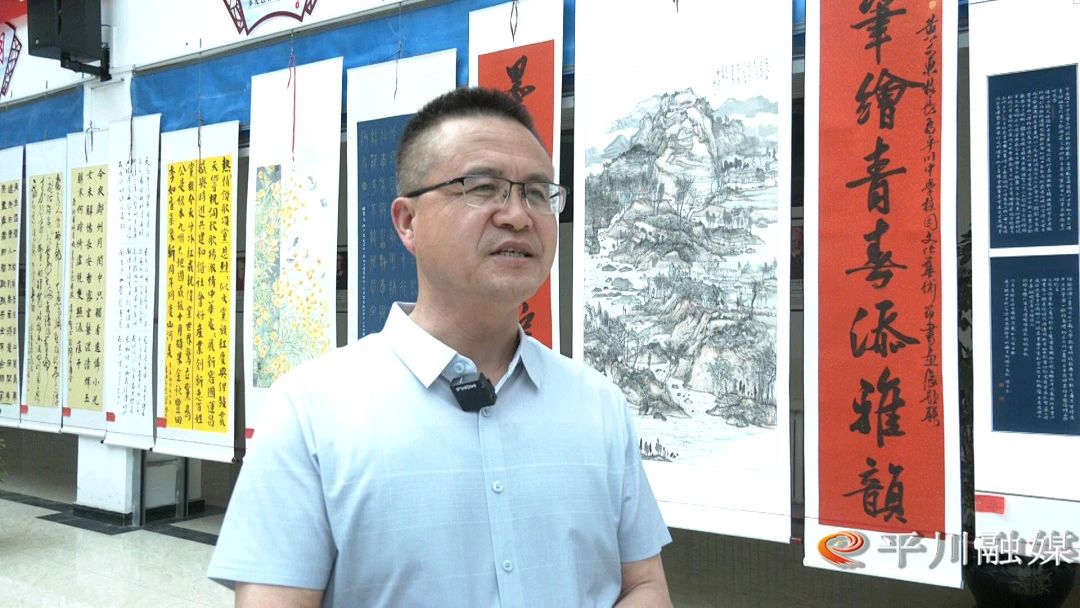 平川中学校长黄文东:“今年是我们学校的第八届校园艺术节,书画艺术是校园艺术节必不可少的一个环节。我们希望这个活动为我们的学校艺术教育做一个很好的推广和发扬,也让我们的学生艺术才华得到展示、艺术潜能得到挖掘。通过这个活动,推动我们学校的整体的教育,向前有一个发展,也就是培养全面发展的学生。同时也以此活动为我们的教育名区建设作出我们高中学校应有的贡献。”