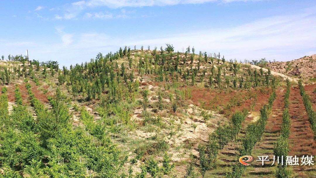 平川区水泉镇玉碗泉村村民马占清:“以前我们这个地方整个是荒山,草都是干的,从21年开始种树,第二年满山整个就绿了,环境也好了,树越长越好,面积一年比一年大,确实变化很大。”