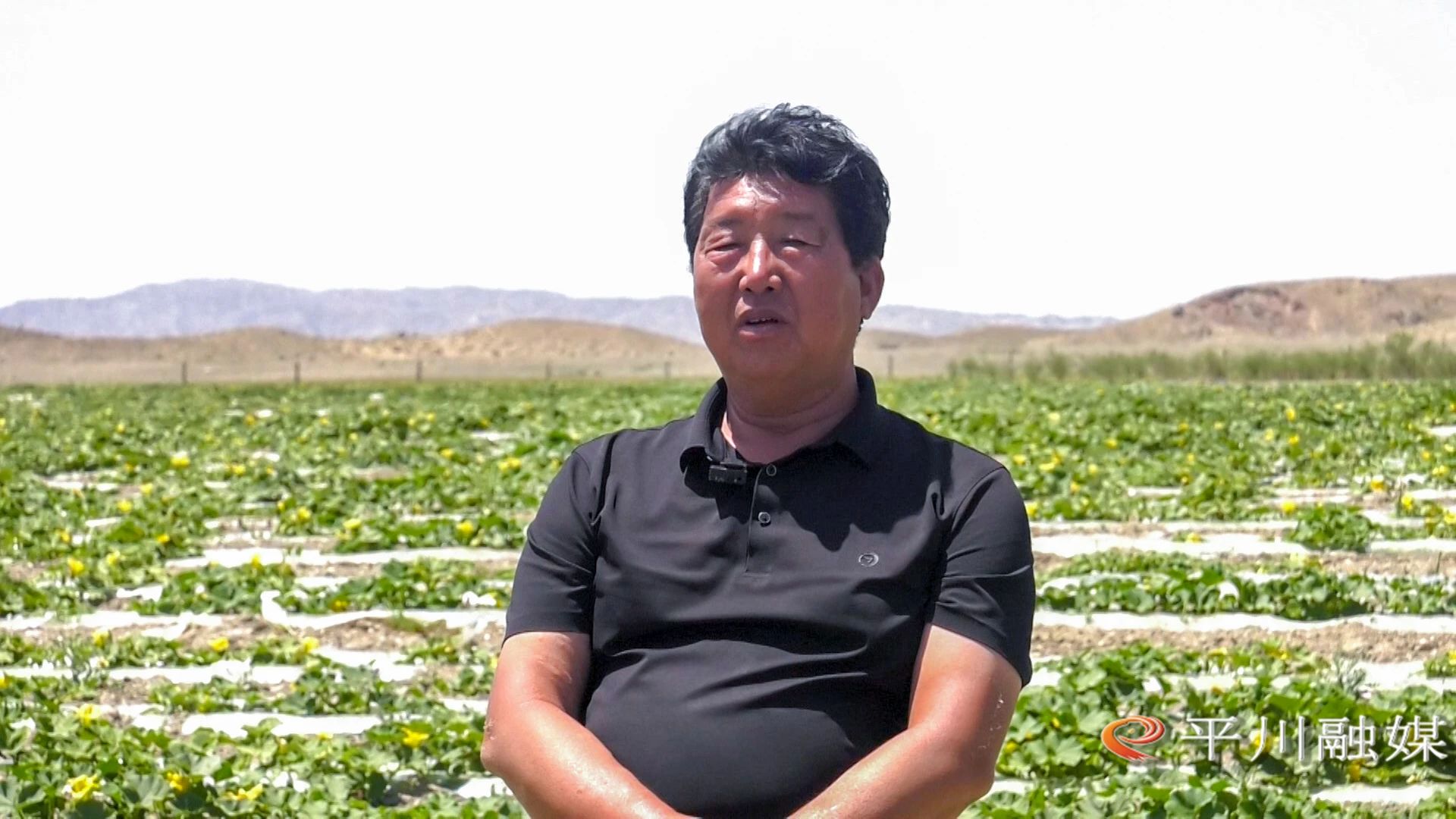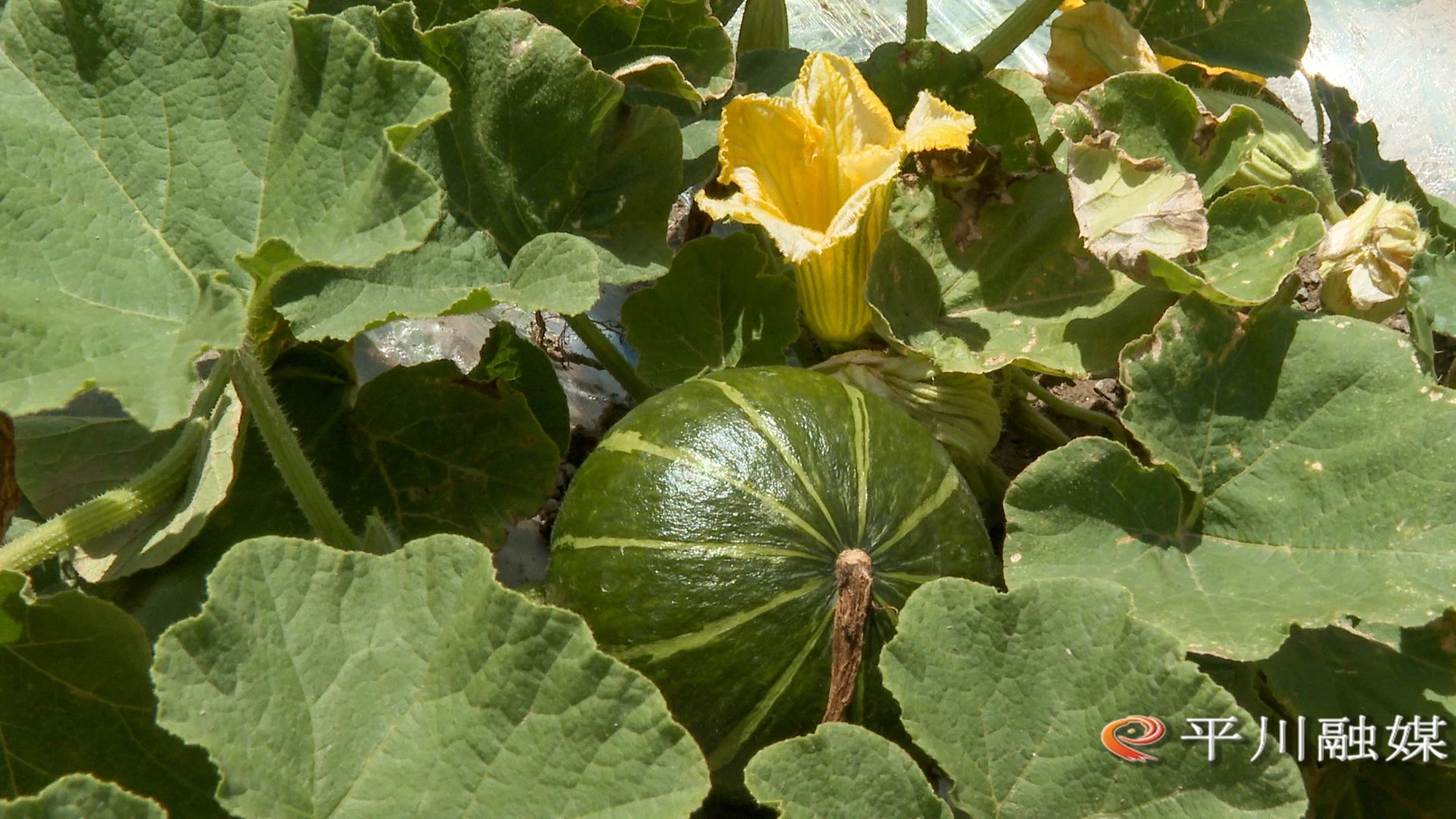 平川区盈祥种植专业合作社负责人冯得军:“今年这种了些贝贝南瓜,有一百多亩,再种了西甜瓜和京欣西瓜,下来有个六七百亩,还种了些藜麦。这就是贝贝南瓜,现在这个长势你看,虽然今年是个旱年,这个为什么长这么好,就是黄河水的好处,咱们这个贝贝南瓜已经滴了三次了,一回下来滴十几方、二十方水,你看这个瓜就长得好得很。”