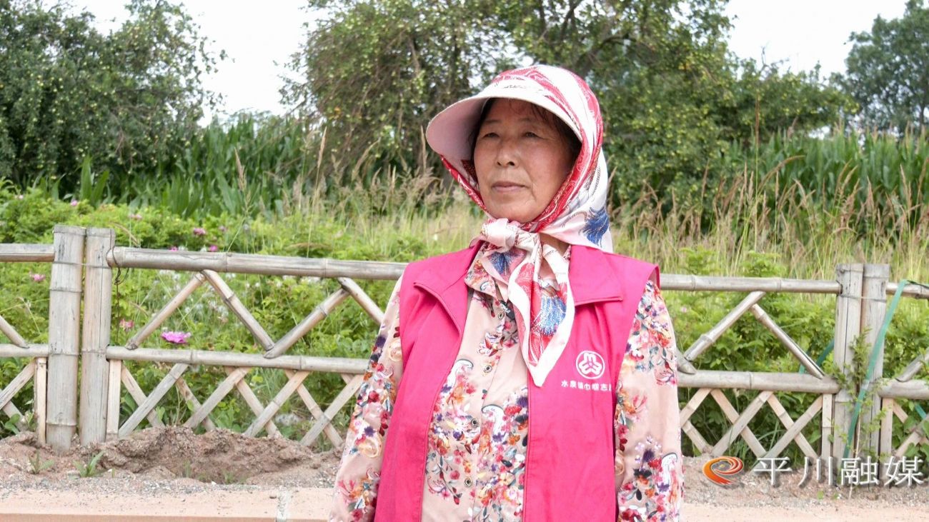 平川区水泉镇砂流水村志愿者王源凤:“我是村上打扫卫生的志愿者,我们是每周定时定点打扫卫生,从109线旁边到邵家水的丹霞。”
