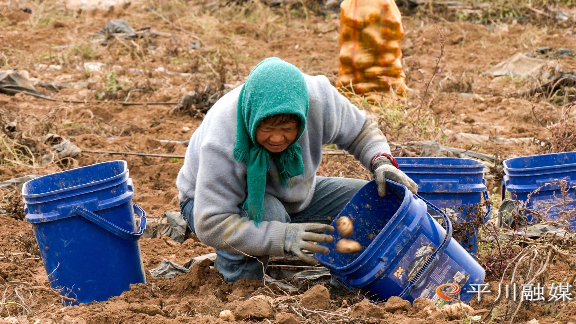 平川区种田乡五星村村民魏亮冰:“现在开始拾洋芋了,每天就有20个人,能拾半个月时间,门跟前的活有了就干着,也方便得呢。”