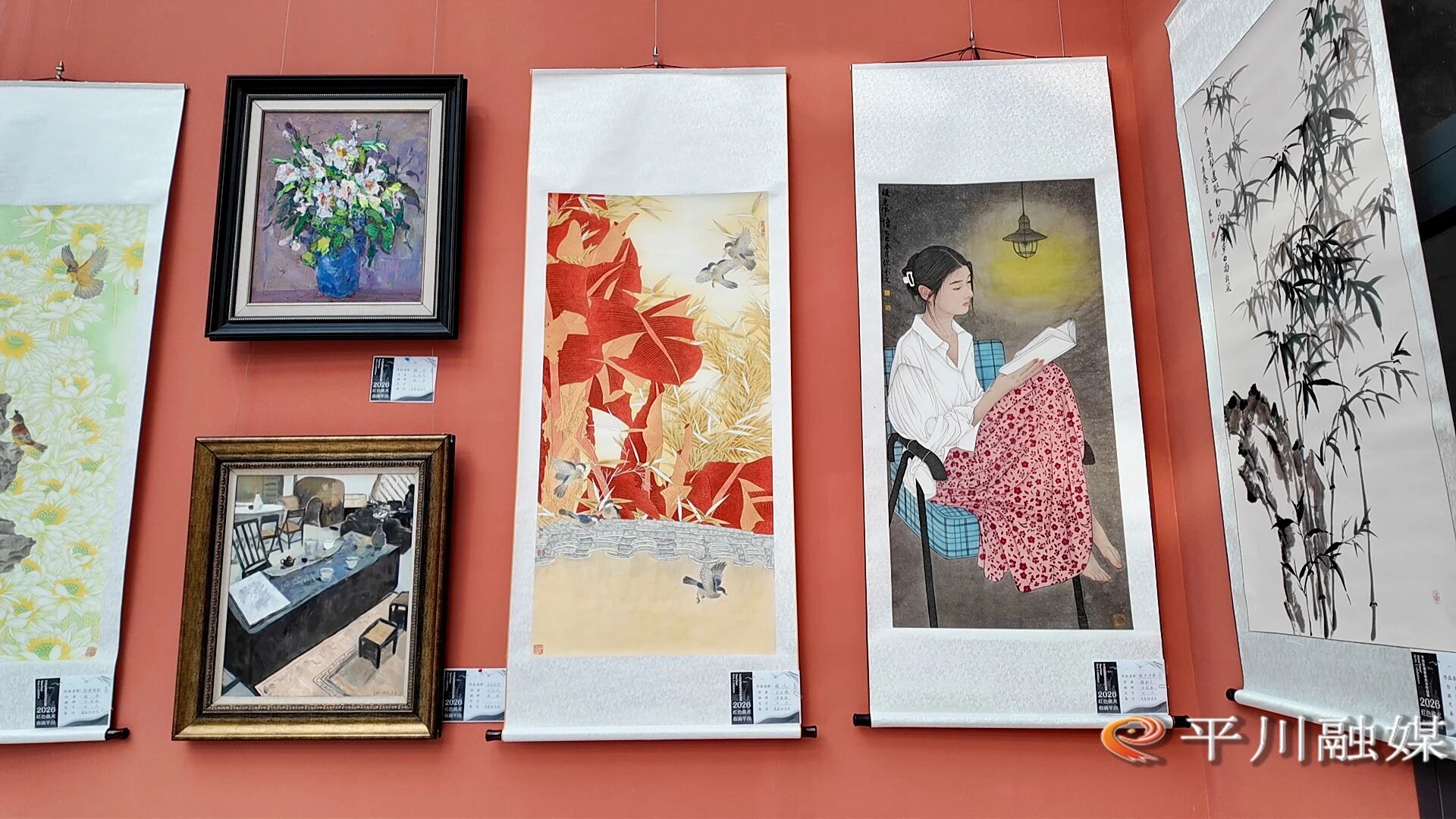 此次展览精选40余名本土美术工作者的精品佳作,涵盖中国画、油画、版画等多个艺术门类,作品题材丰富、风格各异,全方位展现多元艺术魅力。画作中,既有对红色峥嵘岁月的深情回望,让红色薪火在笔墨间代代相传;也有对平川“三区”建设的生动刻画,定格城市发展的生动实践与喜人变化;更有对新春团圆、国泰民安的美好祝愿,用吉祥构图与鲜艳色彩传递新春暖意。
