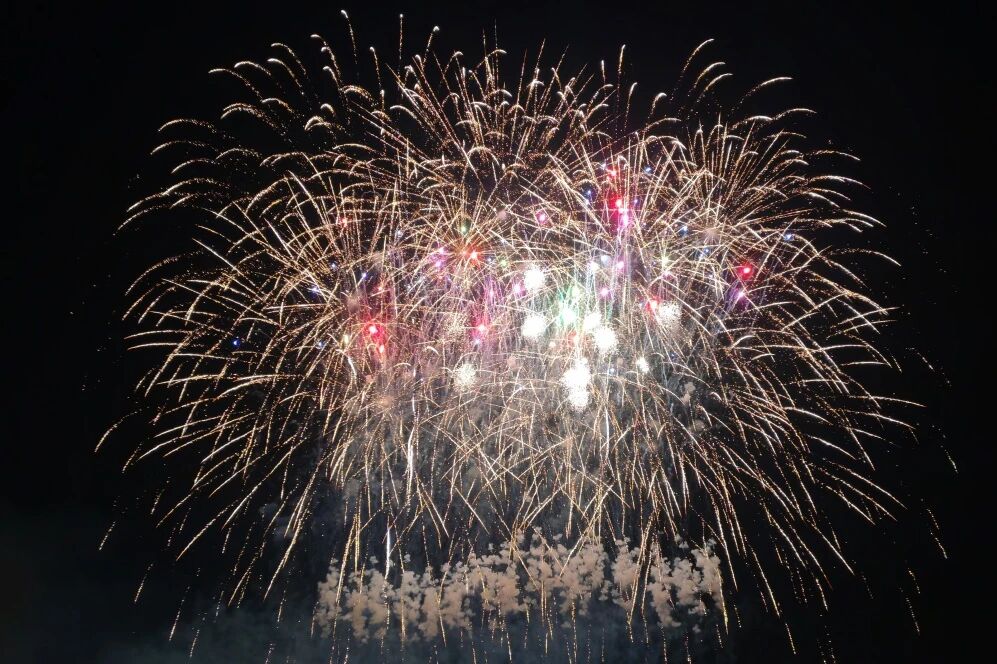 焰火晚会在金色龙形焰火腾空而起的惊艳瞬间正式拉开帷幕。第一篇章紧扣“工业强区、生态美区、教育名区”三大战略展开。开篇以金色龙形焰火象征战略引领如灯塔般照亮前路;随后蓝绿渐变的焰火矩阵徐徐舒展,呼应“生态美区”的绿色基底;璀璨星光般的焰火次第点亮,寓意“教育名区”汇聚八方英才;工业齿轮造型的焰火连贯升空,则彰显了“工业强区”的硬核实力。