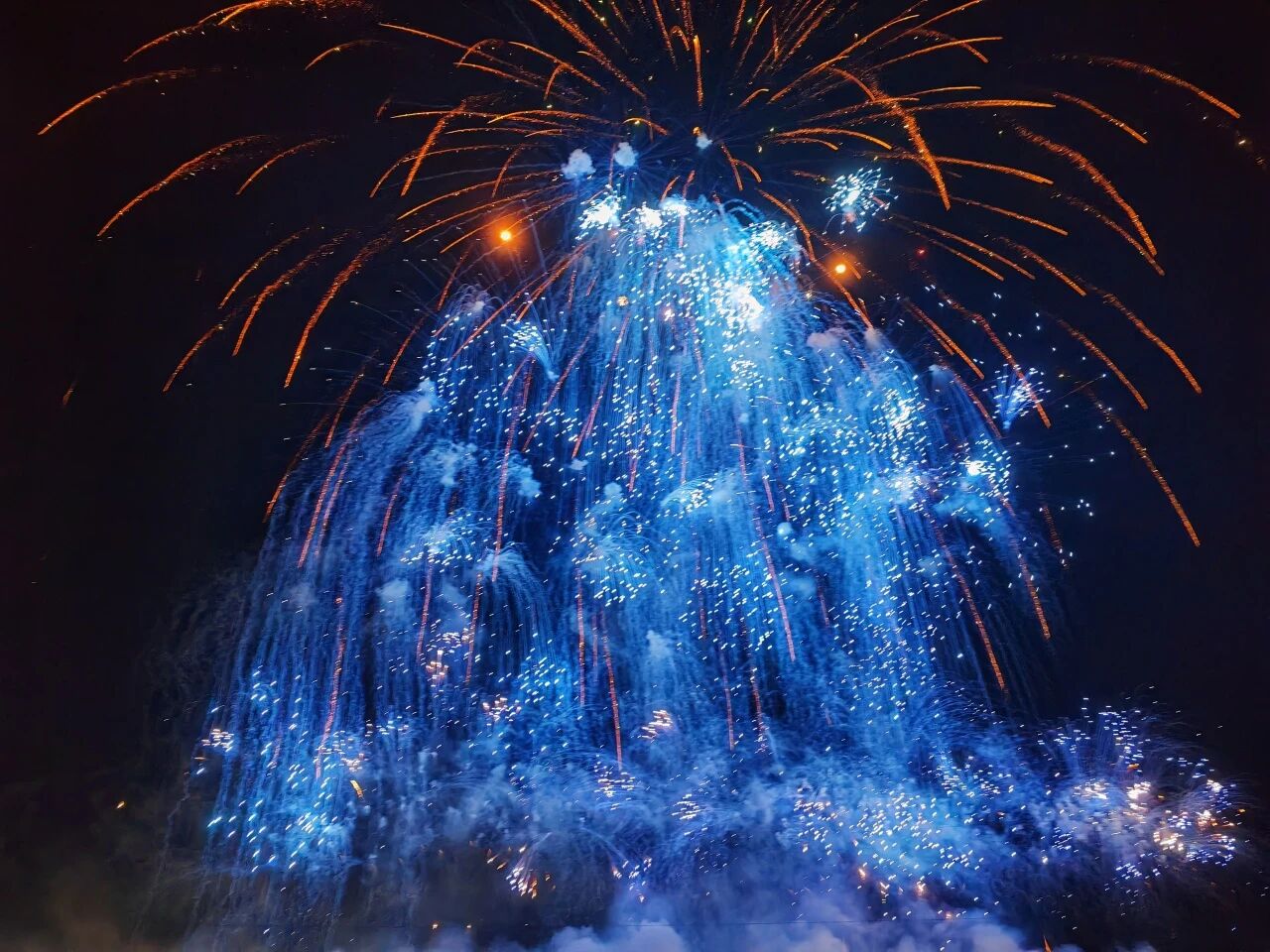 星河倾泻,焰火璀璨,第三篇章“三园竞辉耀高地——赋能发展聚动能”将现场气氛推向高潮。三组特色焰火紧扣“三园高地”建设,在“十五五”规划开局之年奏响了奋进强音。第一组炽热的红橙焰火搭配爆裂特效,展现园区产业发展的蓬勃活力;第二组深邃的靛蓝焰火点缀闪烁星点,象征园区科技创新的前沿探索;第三组温暖的暖黄焰火辅以层叠造型,凸显园区产城融合的宜居属性。三组焰火时而独立绽放、各展风采,时而交织汇聚、形成合力,完美呼应了“三园高地”作为发展支撑的聚合效应,传递出平川产业升级的强劲动能。