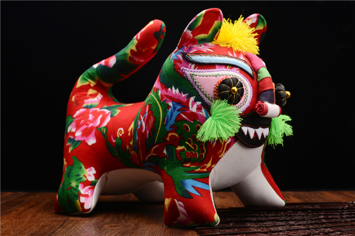 庆阳香包非遗传承人刘兰芳同员工一起制作世博虎、虎头鞋