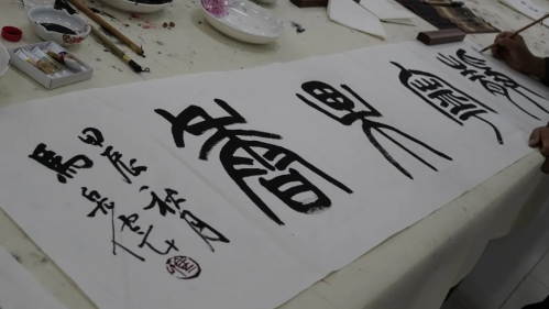 采风团来到第三届中国苹果产销峰会暨“静宁苹果”产业招商推介大会主题馆和静宁县文化馆,深入了解静宁县的苹果文化及静宁苹果从种植、培育到销售的全过程,感受静宁人民对苹果产业的执着与热爱。在静宁县文化馆,苹果产业成果展和静宁深厚的历史文化底蕴相互交织,书画家们纷纷拿起毛笔,将看到的果展景象与心中的感悟融入到作品之中,笔走龙蛇,一行行赞美之词跃然纸上,字里行间充满对静宁的热爱和对静宁劳动人民的赞美之情。